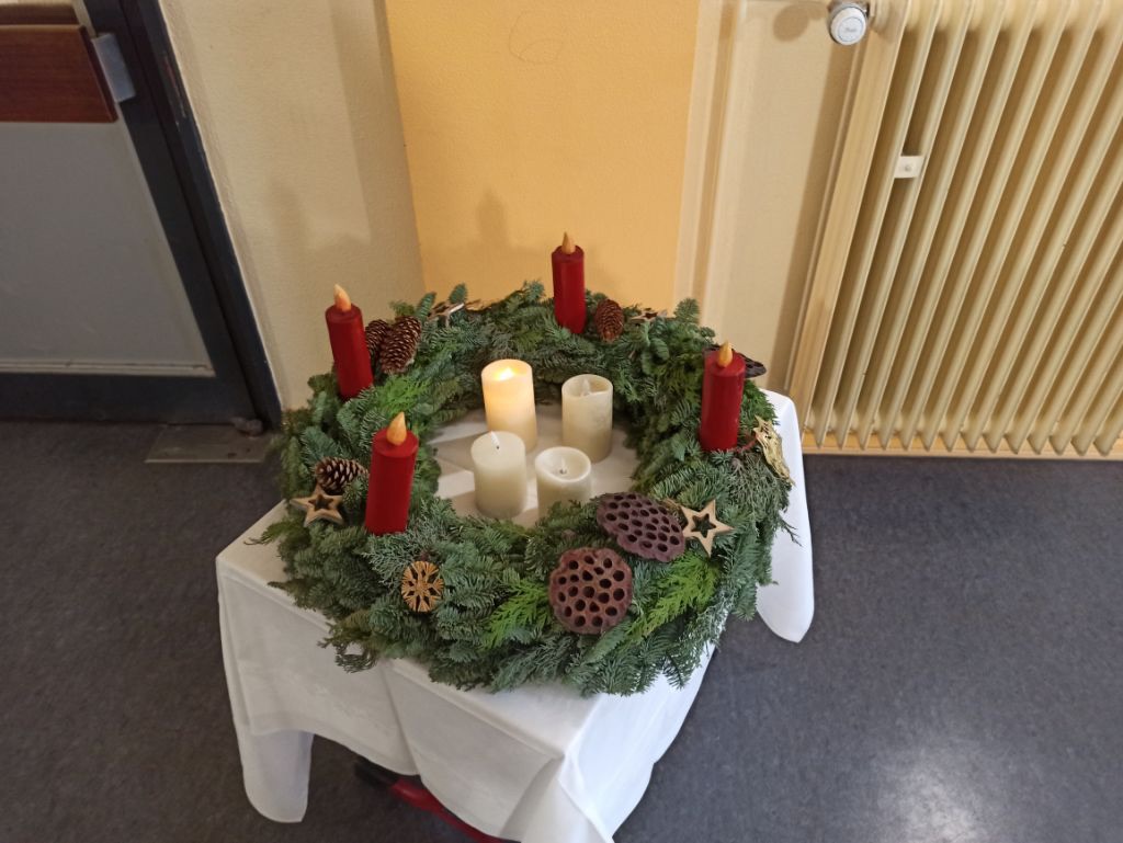 Für den Musikunterricht und für Veranstaltungen finanzierten wir eine mobile Musikbox, die Willkommensschriftzüge im Treppenhaus werden um fehlende Sprachen ergänzt. Ein Adventskranz wurde angeschafft und erleuchtet nun die dunkle Zeit im Erdgeschoss der Schule.